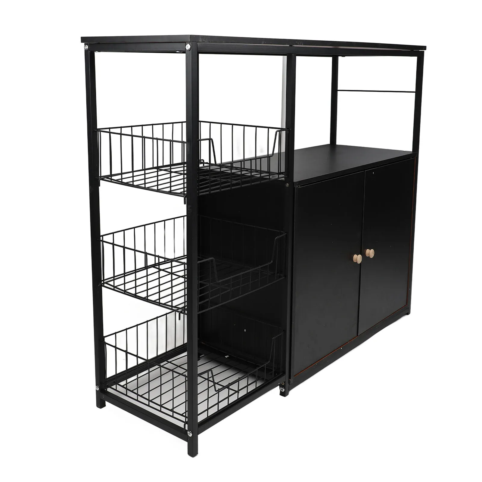 Kitchen Storage Cabinet Multifunctional Floor Standing Sideboard Cabinet Microwave Shelf Organizer Rack Pot Storage for Dining Room Living Room