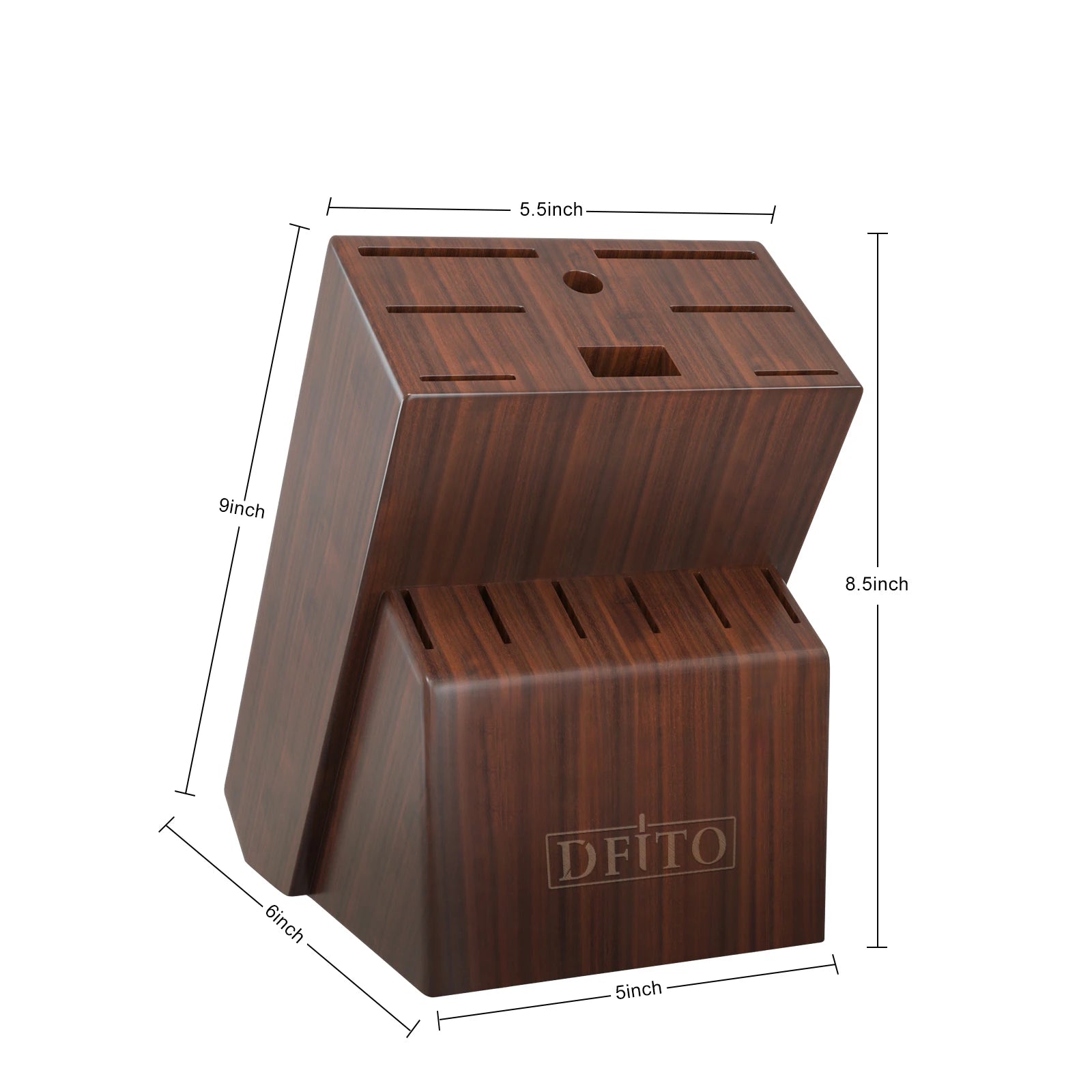14 in 1 Knife Block Set: knife sets for kitchen with block includes 8" Chef's Knife, 8" Carving Knife, 8" Bread Knife, 5" Utility Knife, 3.5" Paring Knife, 6 Pieces of 4.5" Steak Knife, Kitchen Scissors, Sharpening Stick and Sturdy Wooden Knife piece. One quality knives set for kitchen and the dining table