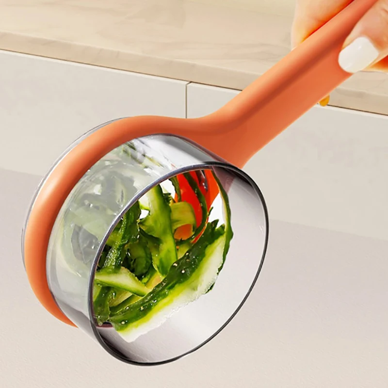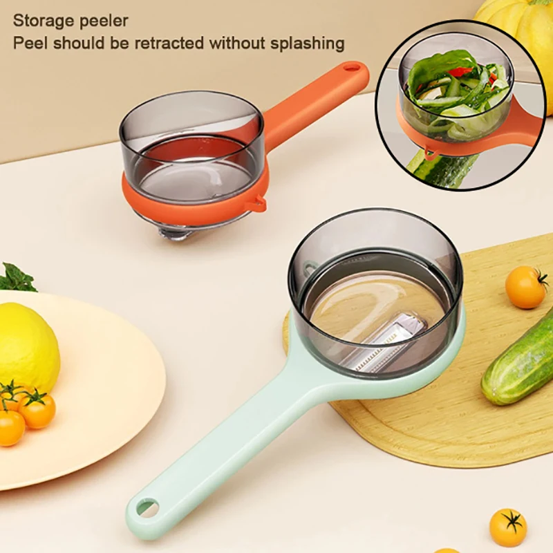 1.Peeler was designed for fast and repetitive strokes to peel potato, apple, cucumber and other tough-skinned fruits and vegetables, peeler with container for kitchen collects peels to avoid mess on table.