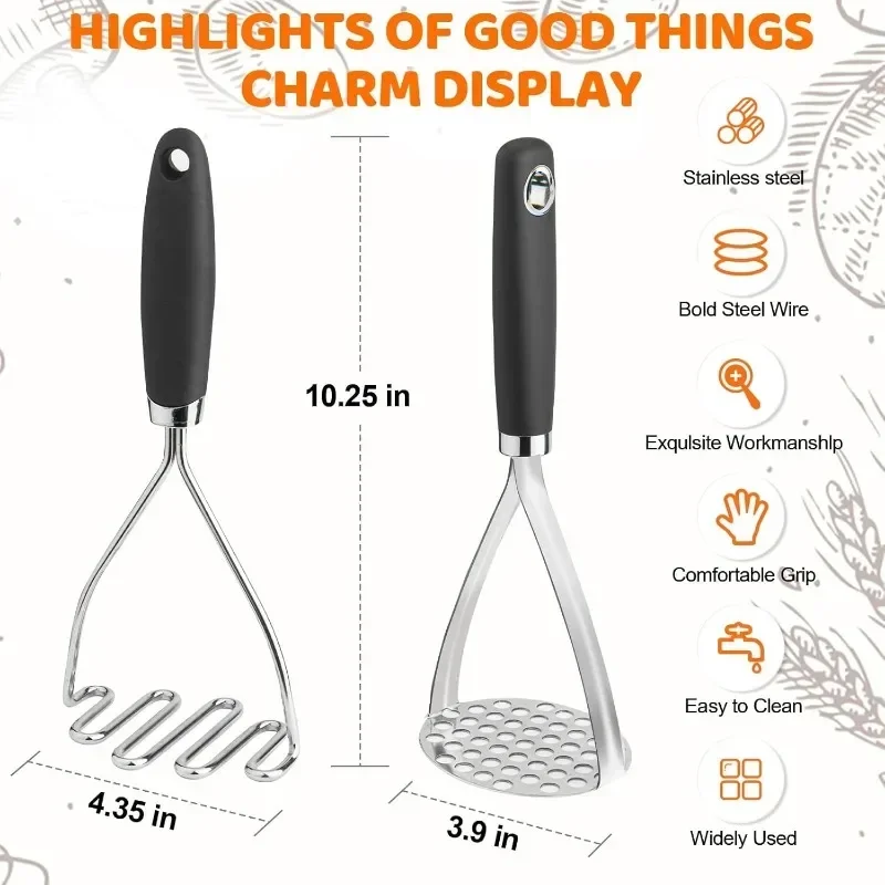 Potato Masher 2 Piece Set, Stainless Steel Potato Masher