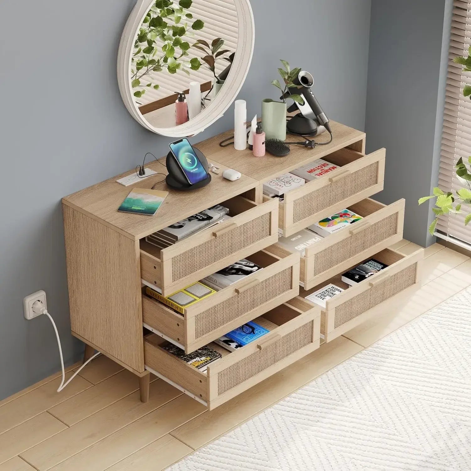 • Boho-Style Design: A wonderful collection of delicate rattan, metal sliding drawers and matte finishes for visual perfection. More than just a bedside table, it is also a sleek side table, coffee bar or buffet sideboard to decorate your home environment