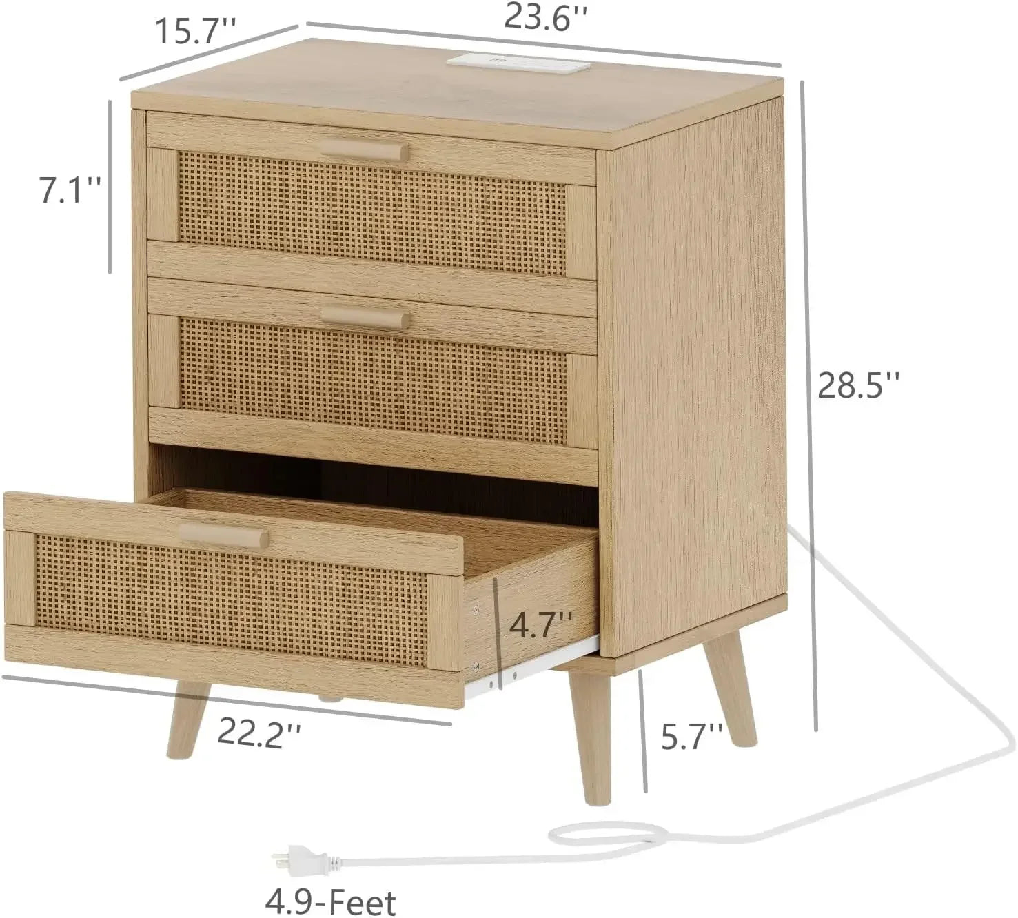• Charging function: The night stand with drawers comes with 2 AC outlets and 2 USB ports, which are handy to charge your multiple devices in one time. No matter next to your sofa or bed, it is ready to power your computer, tablet, record player, game console and more