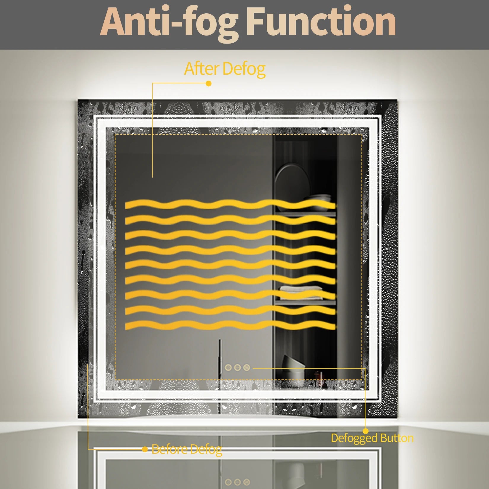 Features: Touch Sensor, Anti-Fog, Backlit Light, Led Strip