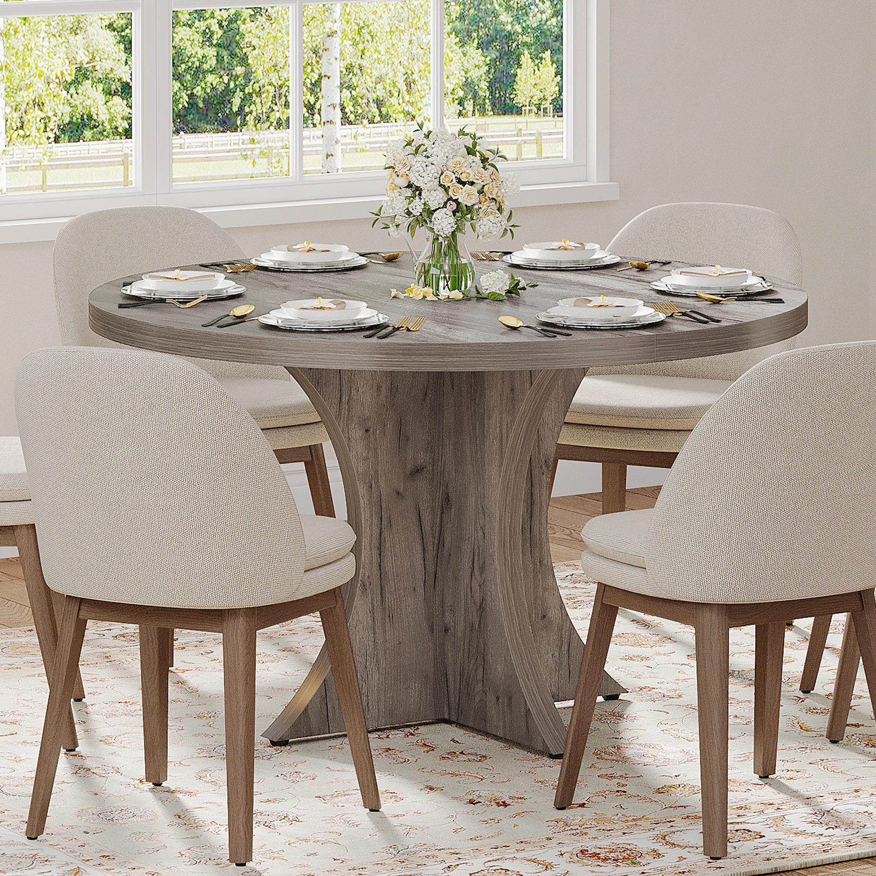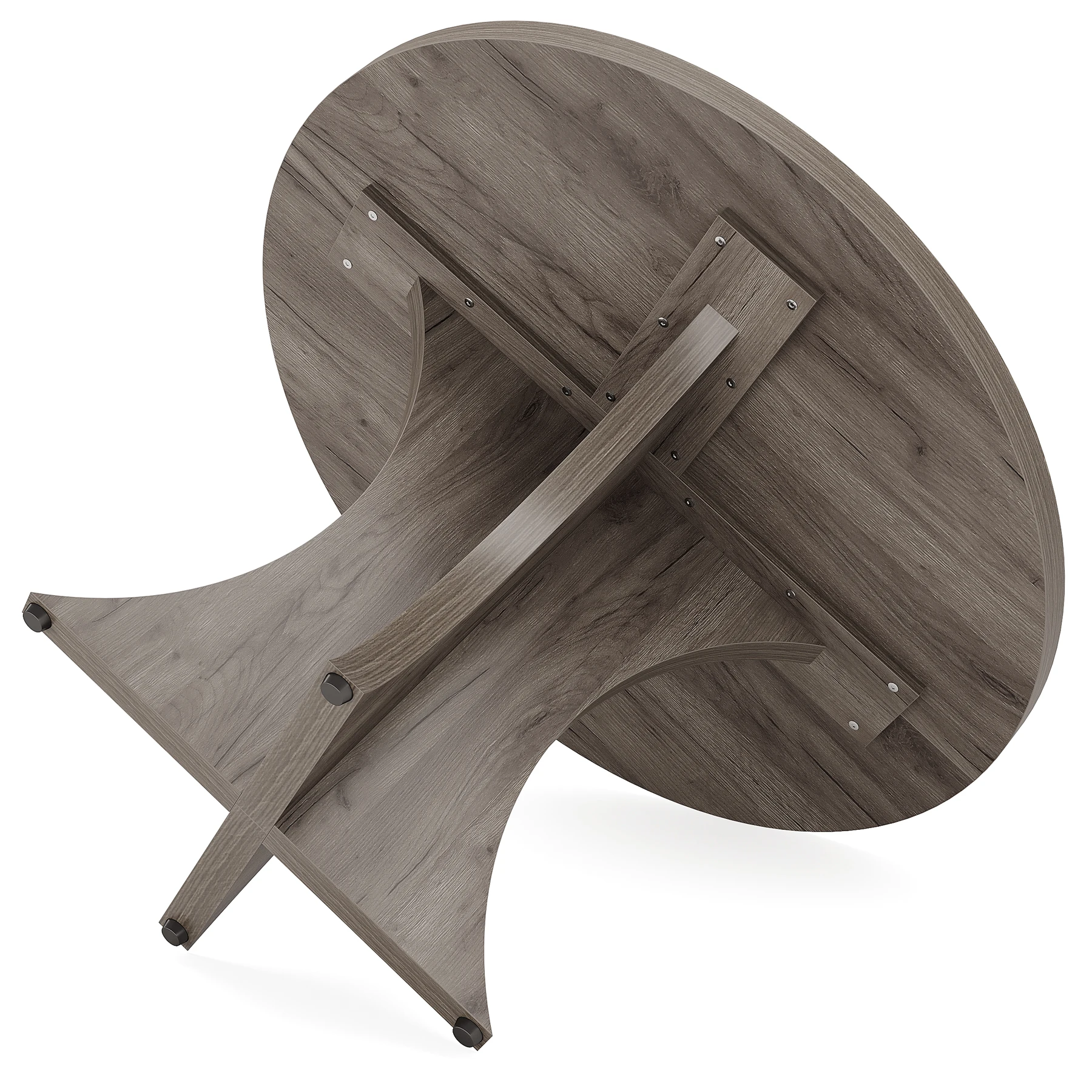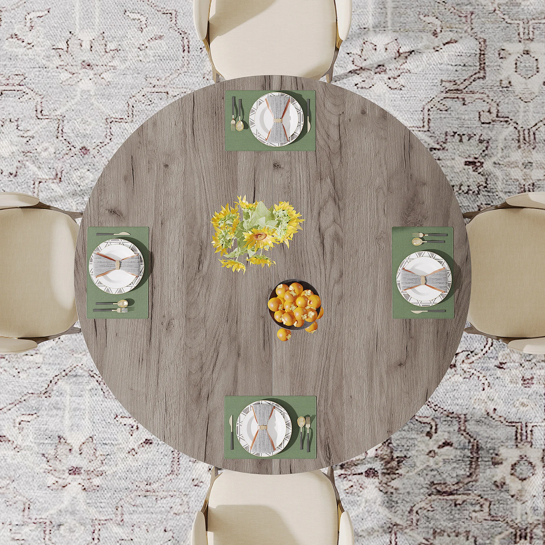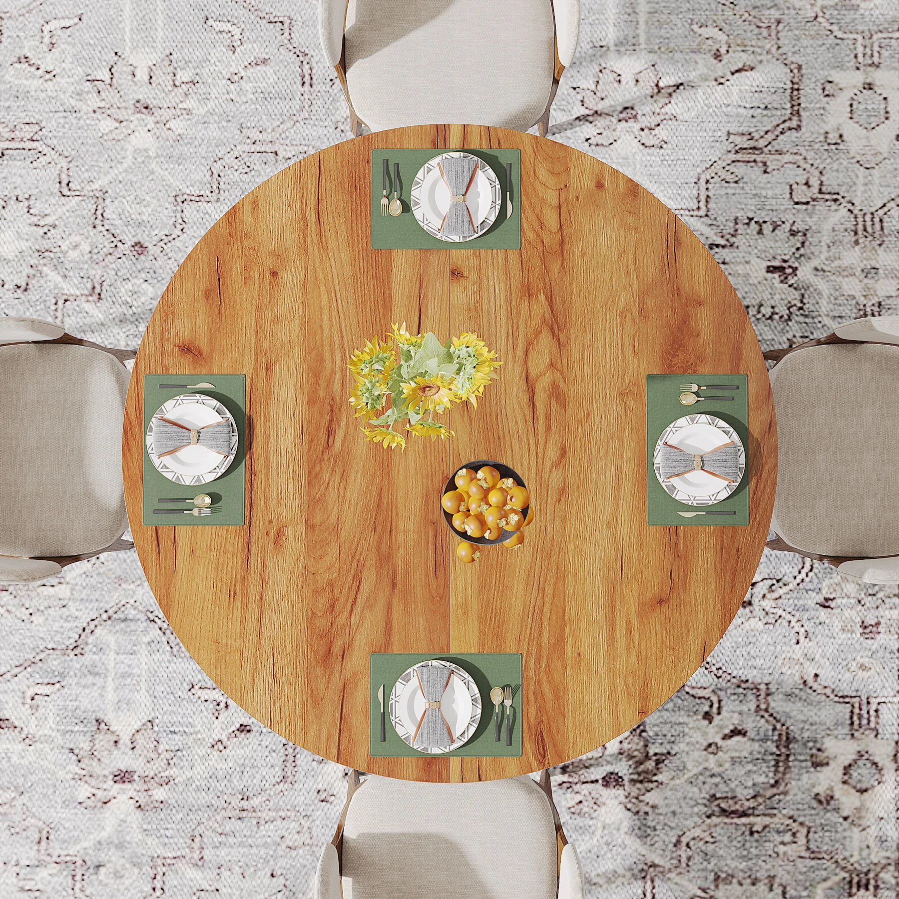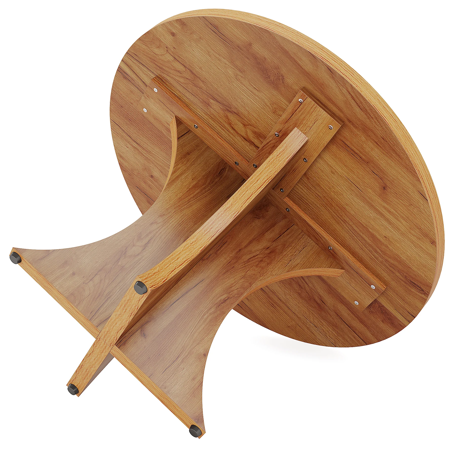 • [Stable & Sturdy Construction]: Constructed with a 1.57" thicker particle board tabletop and a crossed planks base, this circle dining table is not only designed to endure years of use, but is also waterproof, sturdy, scratch resistant, and easy to maintain. Adjustable foot pads safeguard your floor from scratches and stabilize the table on uneven surfaces.