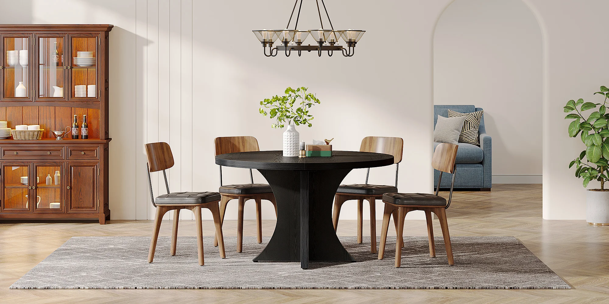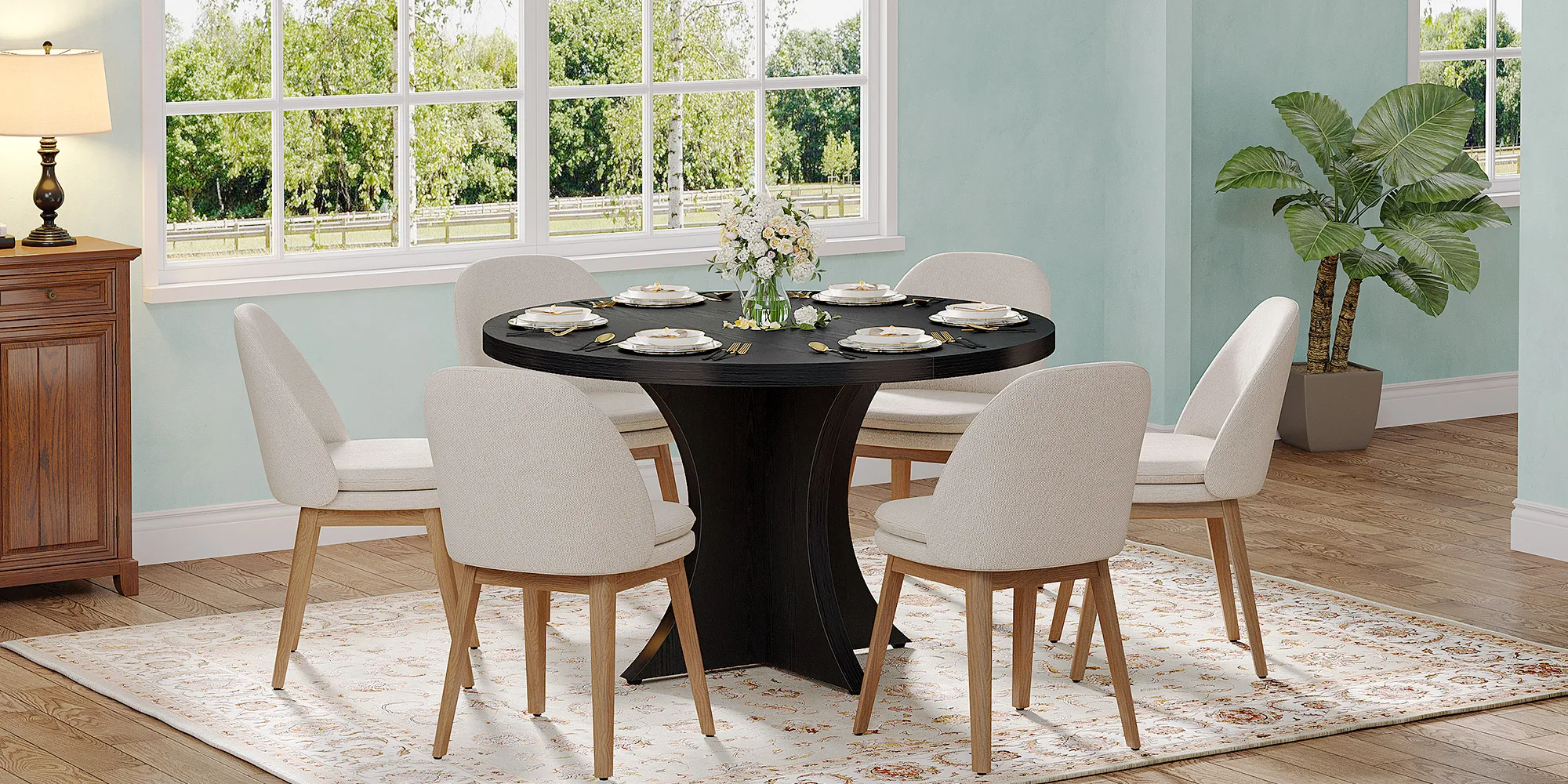 • [Round-Shaped Design]: Featuring a round design, this dining table has no sharp edges, making it safer, especially in households with children. In addition, the round kitchen table is space-efficient compared to rectangular ones, and promotes easy conversation, whether you're in a dining room or a meeting room.